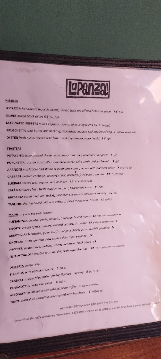 Introducing the Menu at La Panza
